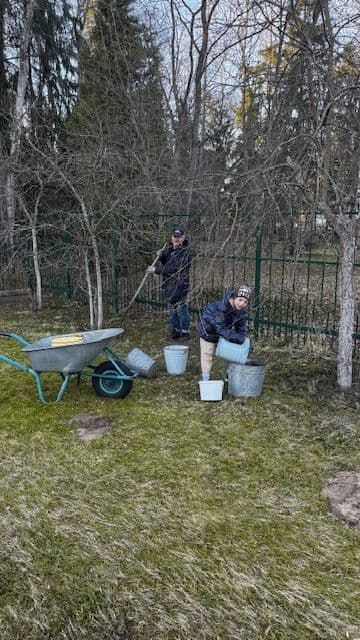 väljas hoolitsesid koguduseliikmed puude eest ja korrastasid territooriumi;